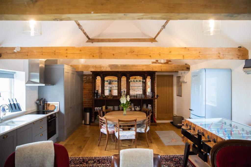 Light and airy open plan barn with Scandinavian vibes. Lovely views from all of the windows. Cosy logburner and fabulous kitchen. Close to Tenterden and Rye as well as fabulous beaches, vineyards and restaurants. Outlet shopping in the Outlet Mall as well as in the quintessential English villages. Lovely walks on your doorstep Those looking to book with a pet please read the additional house rules.