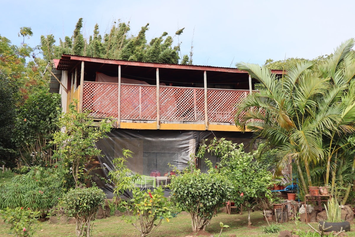祝您在安靜且位於市中心的地方享受您在Rapa Nui的住宿體驗。 非常適合家庭或朋友團體入住。 包含接送服務,並配有花卉項鍊。 距離主街450公尺(步行7分鐘) ,在那裡您可以找到餐廳、手工藝品店、文化景觀、冰淇淋店等。從主大道步行7分鐘即可抵達大海,在那裡您可以與海龜一起遊泳或享受美麗的海岸漫步。