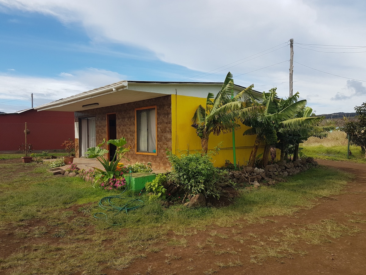 祝您在安靜且位於市中心的地方享受您在Rapa Nui的住宿體驗。 非常適合家庭或朋友團體入住。 包含接送服務,並配有花卉項鍊。 距離主街450公尺(步行7分鐘) ,在那裡您可以找到餐廳、手工藝品店、文化景觀、冰淇淋店等。從主大道步行7分鐘即可抵達大海,在那裡您可以與海龜一起遊泳或享受美麗的海岸漫步。