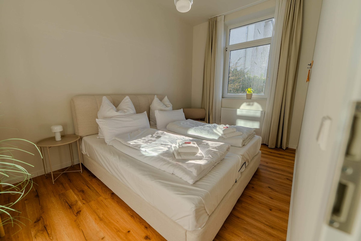 歡迎來到位於希爾德斯海姆市中心的時尚城市套房! 在95平方公尺的空間內,您會發現兩間安靜的臥室,配有舒適的加大雙人床、設備齊全的廚房、用餐區域和Nespresso咖啡機,讓您的一天有個好開始。 現代設計和智慧的佈局,使其非常適合家庭、朋友或商務旅客入住。 安靜但位於市中心,配有高速WiFi和私人停車位。