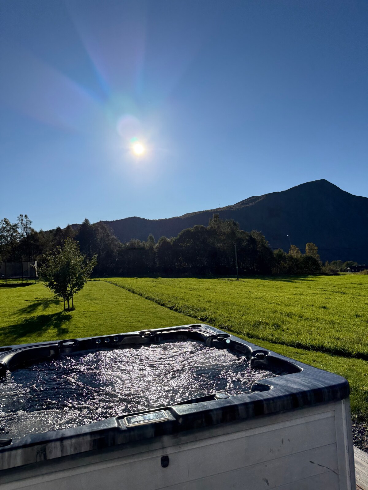 A welcoming guesthouse with three bedrooms, two living rooms and capacity for up to 12 guests. The house offers a fully equipped kitchen, bathroom, dining area, fireplace and Wi-Fi. Loft with bedrooms and living room with TV. Outside a spacious terrace, hot tub, grill area, big lawn, trampoline and beautiful views. Perfect for both families and groups all year round. There is also available toilet next door. Washing machine (NOK 100 per load). Electric car charging is NOK 200 per charge.