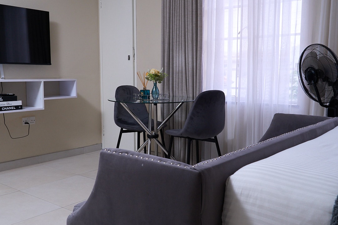 This tastefully furnished studio apartment is modern, well-equipped, and centrally located in the Avenues. Set in the safe and secure Charingira Court complex, it’s within walking distance to the CBD and close to restaurants, embassies, and amenities. Self check-in, Perfect for business or leisure, the apartment has reliable borehole water, a misty fan and 24/7 electricity - your ideal home away from home.