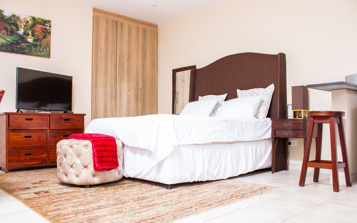 行政套房位於綠樹木繁茂,有美麗的修剪整齊的花園、火坑和戶外烤肉廚房。 有DSTV和不限量的WiFi ,備有穩定的電源,包括電視和燈光。房源乾淨整潔,配有所有現代化設備。這是頂級的 可以安排價格合理的餐點,供長期住宿。您只需收拾行李,來放鬆即可。