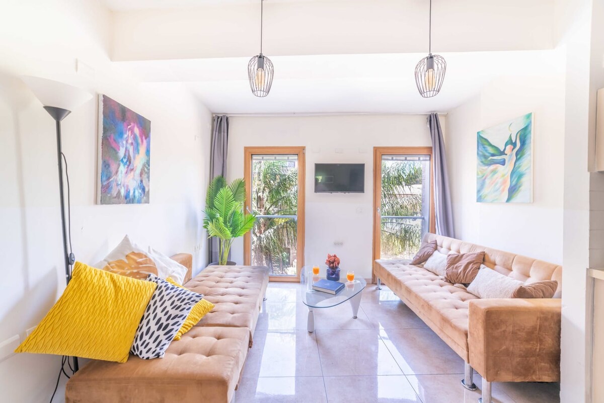 Enjoy Jerusalem in this centrally located, newly renovated, modern, stylish, & spacious 2 Bed-2 Bath Apartment, w/ a garden. 2 minute walk away is trendy Emek Refaim St. and the new railway station which is filled with chic cafes, upscale eateries, and artisan boutiques. Surrounded by trees & green space. Easy parking and transport nearby.