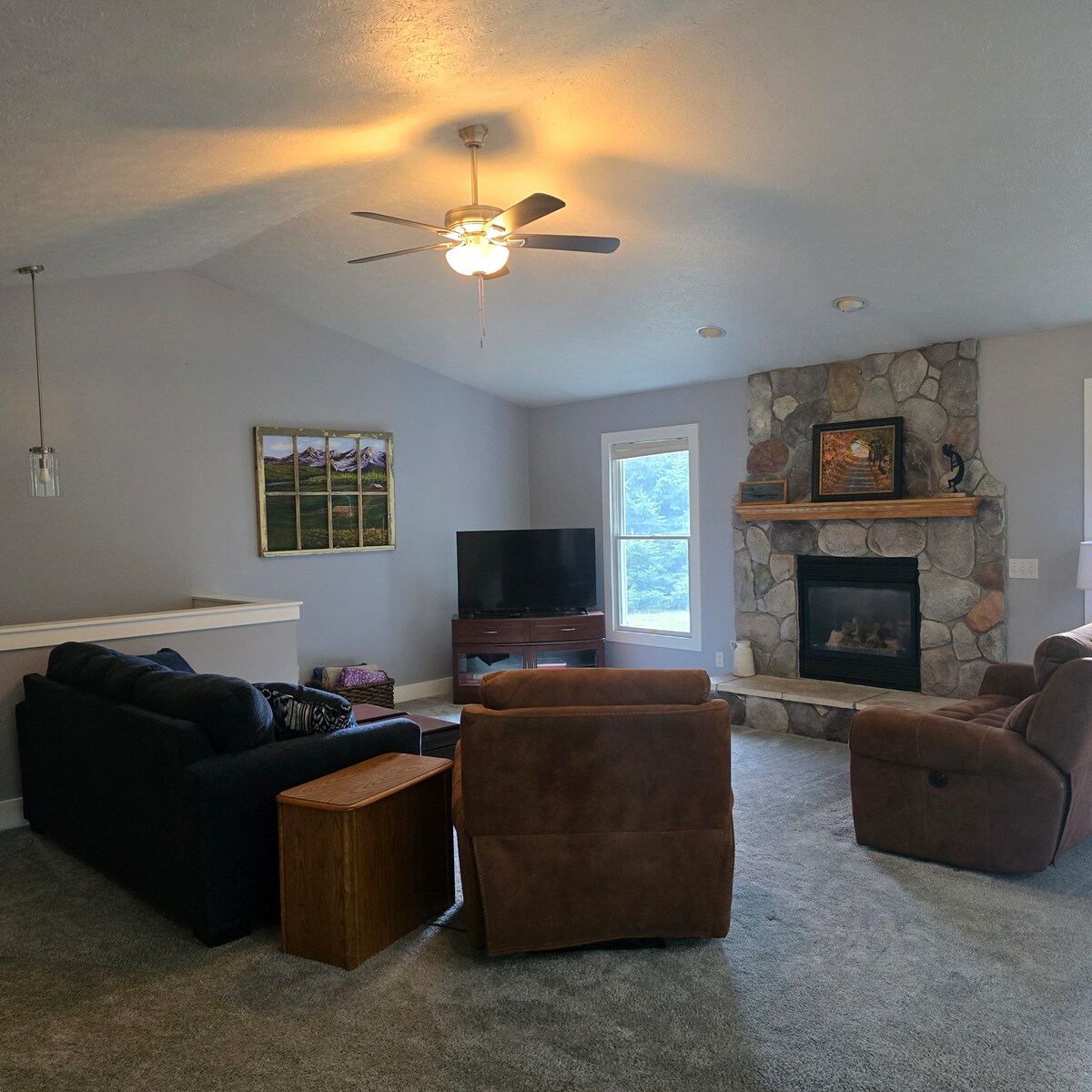 Enjoy a peaceful stay on Pleasant Lake, just minutes from skiing, trails, golf, and downtown Cadillac. This cozy, well-maintained home offers warmth, comfort, and modern convenience in a quiet lakeside setting. Relax indoors with comfortable living spaces or unwind on the deck overlooking the lake. Ideal for couples, families or professionals. Pleasant Lake is an all-sports lake with great fishing and beautiful views. Summer amenities include a grill, bonfire area, kayaks, and paddleboard.