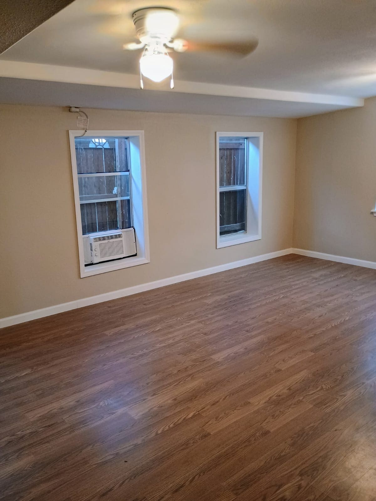 Soak up the vintage charm of this fully renovated Duplex apartment, reclaimed old wood floors, kitchen, fridge, stove/range, microwave, 2 large smart tv, living room, queen bed , modern bathroom with vessel sink limestone vanity top, private patio and yard, mature mesquite trees, dining table, table desk, a block away from Business 77, restaurants, stores, parks, walking and biking trails and the Ramsey park bird center, close to Valley Baptist Hospital and UTRGV Harlingen Campus.