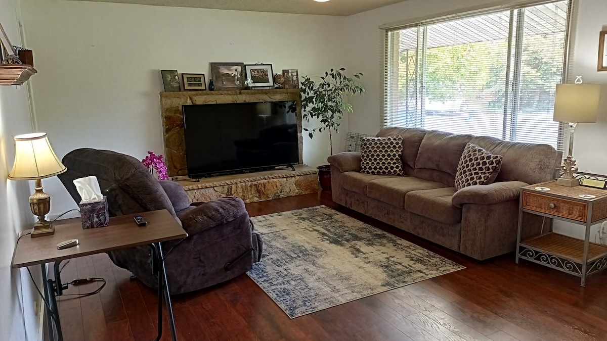 This is a suite inside our home with a private entrance. Includes a spacious bedroom, reading nook, bathroom, huge closet, and “kitchenette” set-up. Stylish, spacious, and peaceful. Soothing colors, so comfortable, and lots of extras. Our “mini farm” is located on over an acre in a quiet bedroom community. Beautiful views of our small orchard, garden, and the mountains. Easy access to downtown, trails, reservoirs, etc. More than enough space inside the suite, and a lovely outdoor dining space.