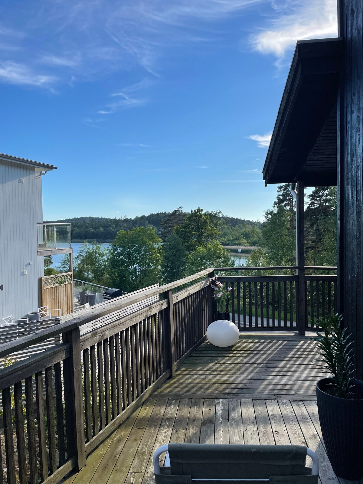 Villa vid sjön nära Göteborg, stor altan med sol