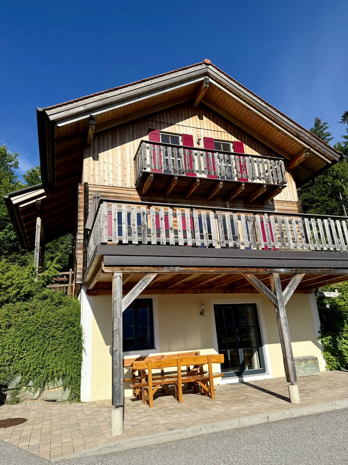 在您的私人夢想別墅中欣賞令人驚嘆的城堡景觀和沐浴奢華! 享受天然游泳池、室內游泳池、紅外線小屋和3個大露臺,配有壁爐和烤架。 非常好的客廳,有8公尺高的窗戶、壁爐和壯麗的景觀。 可容納10人,巨大的花園、遊戲室和圖書館,擁有世界文學經典。 位於登山步道上,不體貼且安靜。 Riegersburg、Zotter和Gölles非常近! 絕對是騎自行車和徒步旅行的天堂。