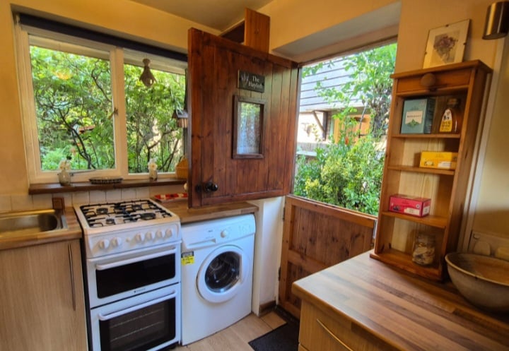 可愛的光線一樓單間公寓。 完全獨立,有路邊停車位。 非常舒適的加大雙人床、寬敞的起居空間、廚房(配有冰箱和炊具、水壺、烤麵包機)、淋浴間/廁所和電視。 距離小熊維尼橋和一家優秀的酒吧約500公尺。 茶、咖啡等,以及歡迎禮包的麥片、麵包、牛奶和奶油將等待您的到來。 花園區域的使用。 友善的房東和同樣友善的史班尼爾犬。