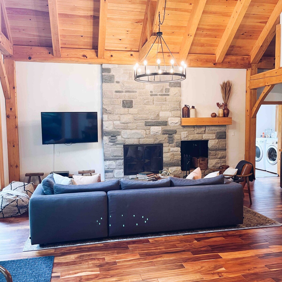 位於艾倫代爾河畔的四季小屋。 享受加熱浴室地板、浸泡浴缸、現代廚房、洗衣機/烘乾機等奢侈品。 高天花板和窗戶讓大自然進入。 步行前往天堂,在營火旁放鬆,劃槳或在河中遊泳。 三間臥室:加大雙人牀、雙人牀、雙人牀,加上2張豆袋椅,可轉換成牀墊。 非常適合家庭或情侶入住。 可供6位房客舒適入住。全新- STARLINK網路! !