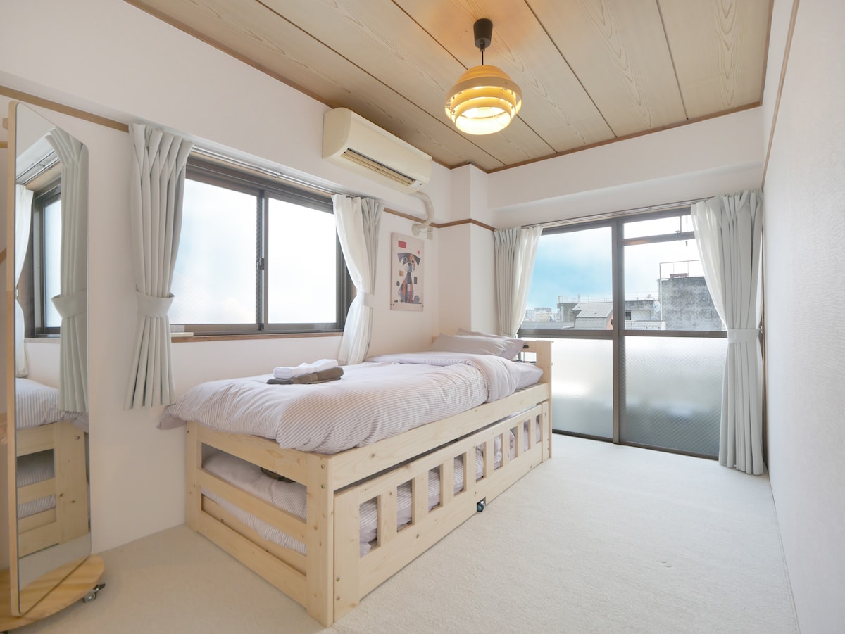 東京觀光的基地/可俯瞰東京的房間/兩間雙人房/步行 5 分鐘即可抵達車站/復古商店街
