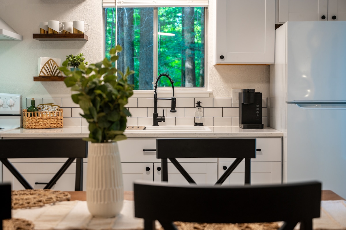 來享受舒適的迷你屋度假,欣賞絕美景色!廚房配備了烹飪所需的所有基本設備,閣樓上超級舒適的雙人床Endy床墊讓您睡得像夢一樣。在您自己的私人戶外火坑旁放鬆身心,或前往探索無盡的徒步和自行車道,僅幾步之遙。高爾夫球場、婚禮場地、餐廳、釀酒廠和很棒的購物中心都距離房源不遠的車程。沒有電視,因此請自行攜帶裝置連接我們的WiFi。