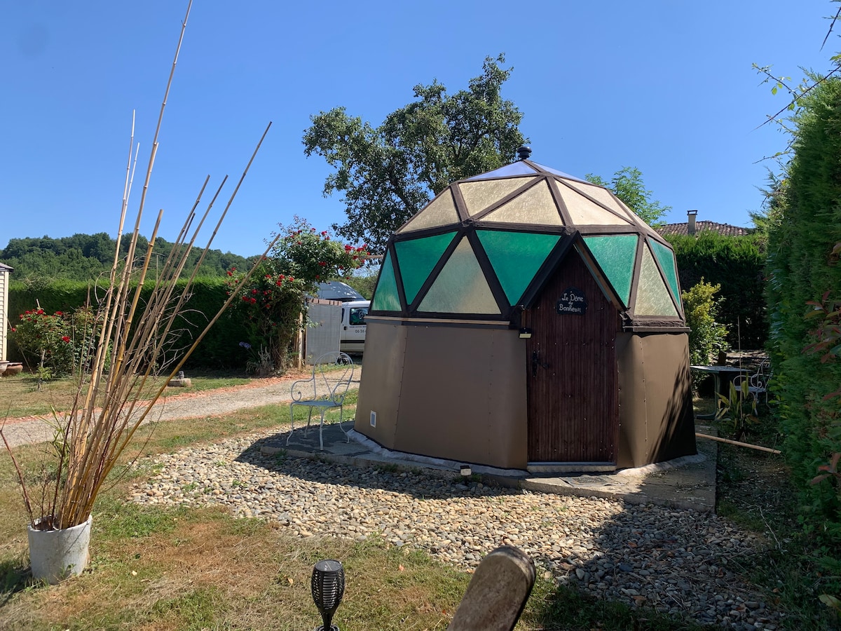 在米爾普瓦附近,距離土魯斯 1 小時車程的獨特圓頂屋中放鬆身心。 享受全景景觀和星光璀璨的夜晚✨。 🚿淋浴間、🚾廁所 和 皇后尺寸🛌床鋪,隨時準備迎接您的到來! 私人水療中心*邀請您來放鬆身心🪷。 您還可以🌄在半遮蔭的露臺下欣賞壯麗的日落。 非常適合情侶度假或重新與大自然建立聯繫! 🏊♂️共用泳池** 附近有散步、河流、綠道🚵和湖泊。