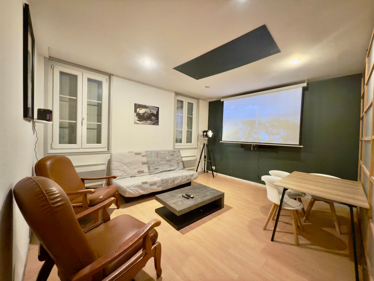 Suite moderne de 34 m² en plein centre-ville de Limoges. Elle offre un salon cosy, une chambre séparée avec vidéoprojecteur et sont écran géant de 100 pouces pour des soirées cinéma (NETFLIX inclus), un lit Queen Size (160), une salle de bain contemporaine et une terrasse privée. Arrivée autonome, confort et prestations haut de gamme. Parking public payant à proximité.