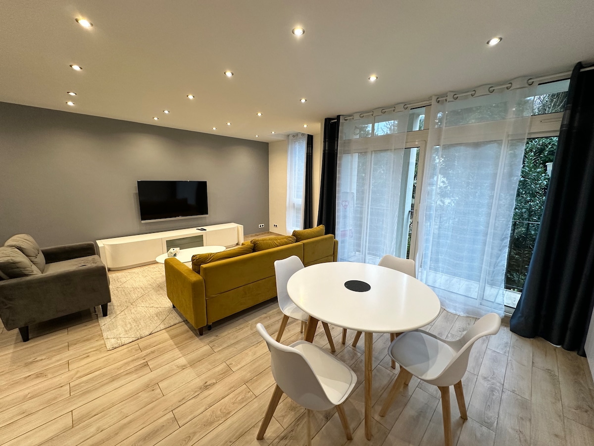 歡迎來到您在Rueil-Malmaison的明亮隱蔽處,非常適合結合放鬆、大自然和靠近巴黎。 公寓位於購物大道上,步行即可抵達麵包店、肉店、Carrefour City (上午7點至晚上9點)、美髮店、自助洗衣店、乾洗店、銀行和健身俱樂部。 附近有歷史遺址馬爾邁松城堡。 摘要 • 室內投影機🎬 • 距離商店僅幾分鐘路程(La Défense)🛍️ • 聖庫庫法森林和塞納河畔 🌳