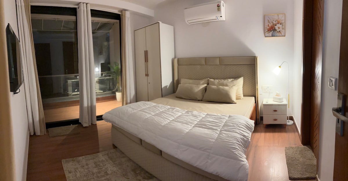 入住我們寬敞的2BR Park-View Retreat ,距離機場8.5公里,乘坐地鐵15分鐘即可抵達。享受通風的陽台、公園景觀、桃花心木/木製床、設備齊全的廚房、高速 Wi-Fi、智慧電視、免費洗漱用品和當地推薦。享用家常菜餚,探索附近的市場和商場,並在寧靜的慢跑步道上放鬆身心。體驗頂級的待客之道,提供彈性入住/退房、洗衣服務和可選的機場接送服務。立即預訂,享受難忘的德里住宿體驗!