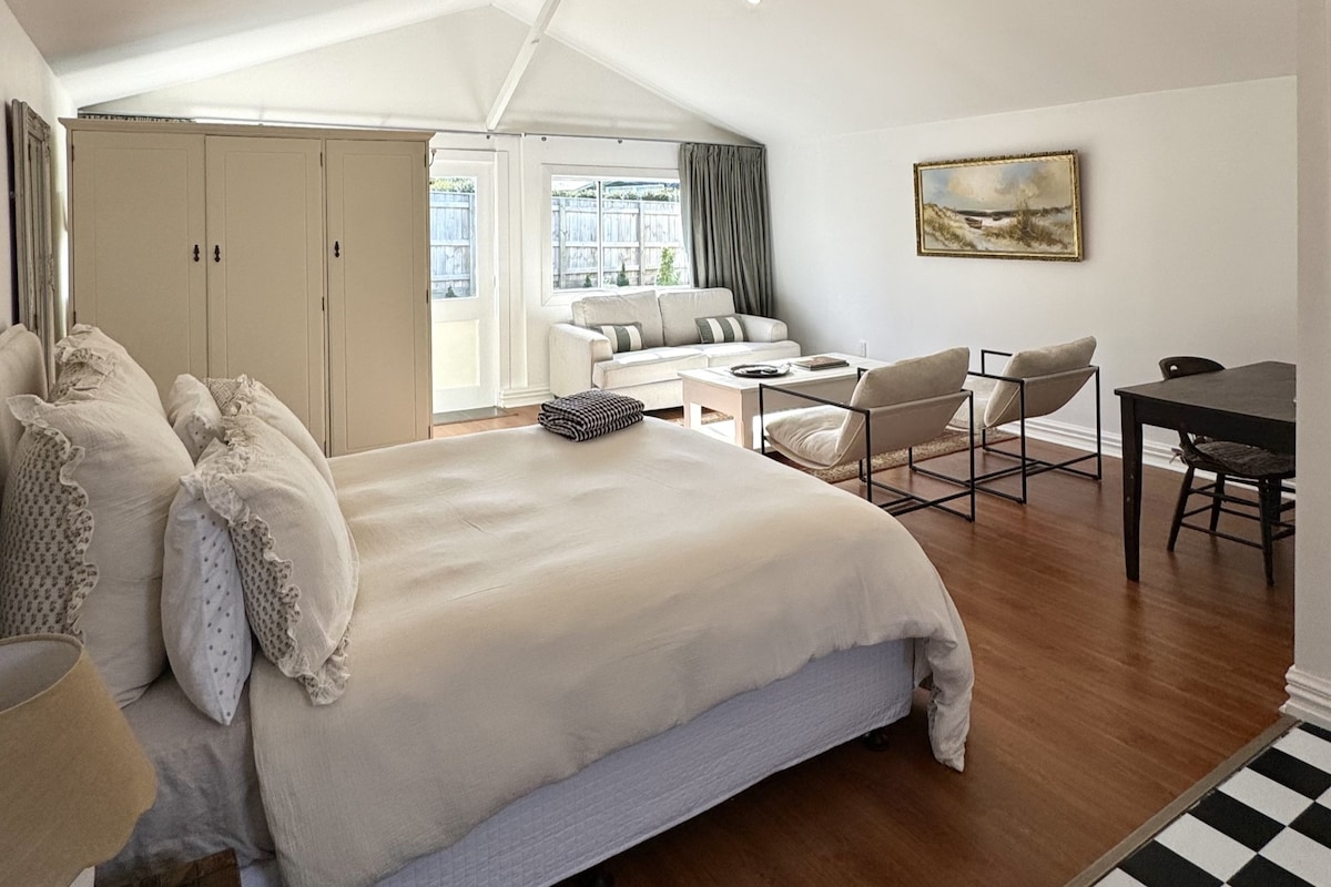 陽光充足、私密且緊湊的單間公寓/睡房,配有連接的臥室和休息室。這是一間由John Scott設計的房子,位於美麗的Havelock North。您將享有自己的隱私,可從安靜且寧靜的房源獨立進出。 步行20分鐘即可抵達村莊,那裡有很多商店和咖啡廳。輕鬆前往當地酒莊、自行車道和霍克灣的所有其他景點。距離內皮爾25分鐘車程,距離機場30分鐘車程。