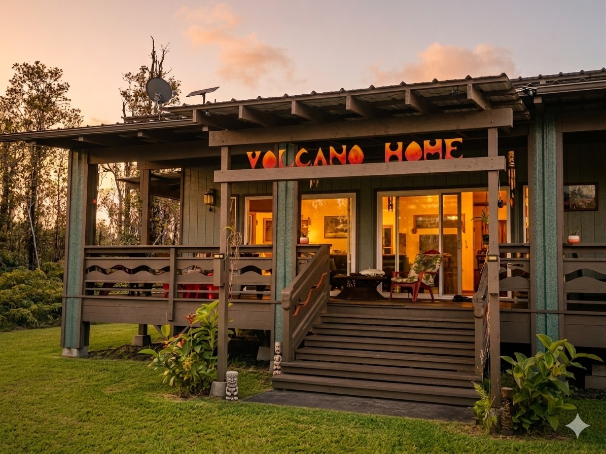 Luxury-Artist Built Rainforest Retreat Near Volcanoes National Park Featured on Discovery Channel (Building off the Grid), this artist-designed rainforest retreat near Hawaiʻi Volcanoes National Park blends sustainable living with island-style luxury — a peaceful escape surrounded by native rainforest. Set on 3 private acres on the slopes of Kīlauea, this handcrafted 2-bedroom home sleeps 6. With modern comforts & curated artistic design, it offers a truly one-of-a-kind stay on the Big Island.