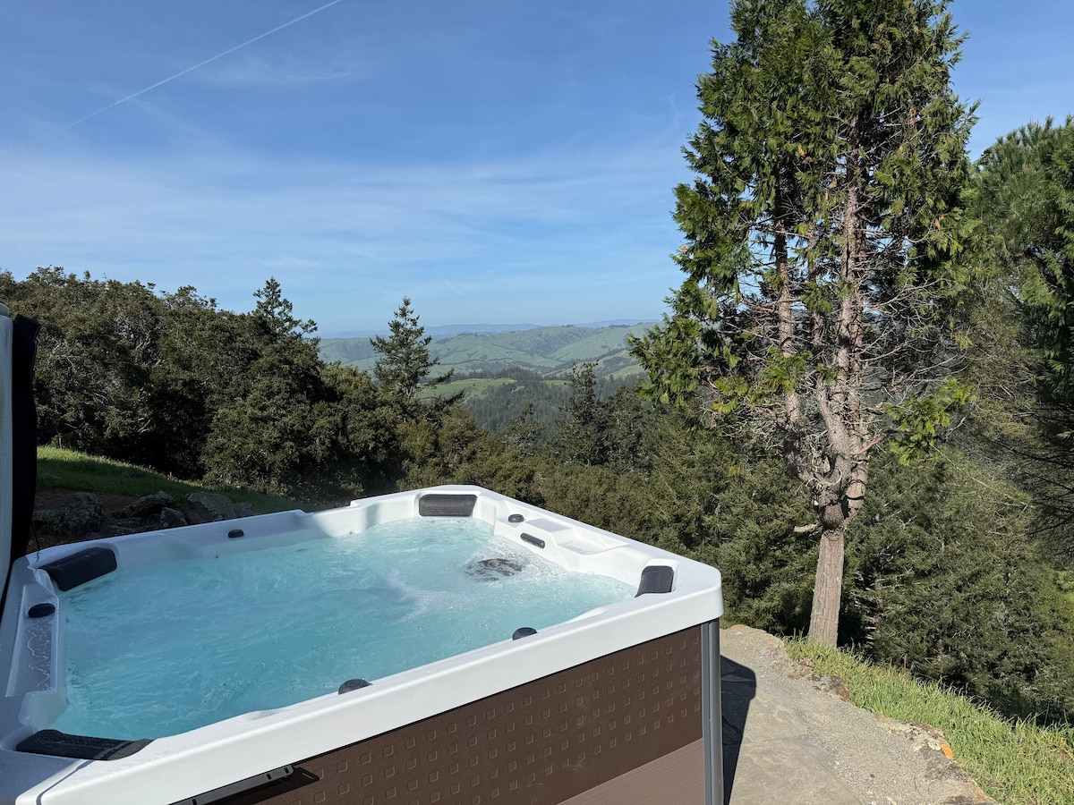 開放每晚出租!靠近神奇的米爾谷(Mill Valley)的金門大橋(Golden Gate Bridge)和米爾伍茲(Muir Woods)。400平方英尺+大露臺,位於塔姆谷(Tam Valley),景觀迷人。包括配有法式門的臥室(加大雙人床)、配有拉出式沙發的客廳、有遮蔭的露台和烹飪區域(請參閱備註)。 當您抵達時,可以從我們的圖書室借一本好書給您,讓您放鬆身心,並在露台上放鬆身心,俯瞰我們令人驚嘆和野生街區的許多連綿起伏的山丘。:)
