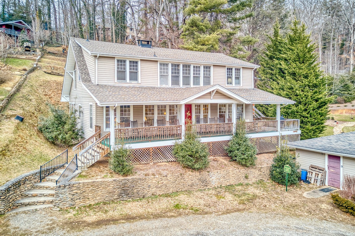 Charming 125 year old cottage has been renovated to host family and friends. A creek lines the backyard with forest behind. Located 8 miles from the Blue Ridge Parkway & 15 miles to downtown Asheville -- explore hiking trails + waterfalls, Haywood Road in west AVL and the Biltmore Estate! Return to this property and relax in the hot tub, rest by the gas fireplace or sit in the large back porch near the creek. Use one of two grills to cook dinner then play volleyball, cornhole, and horseshoes.