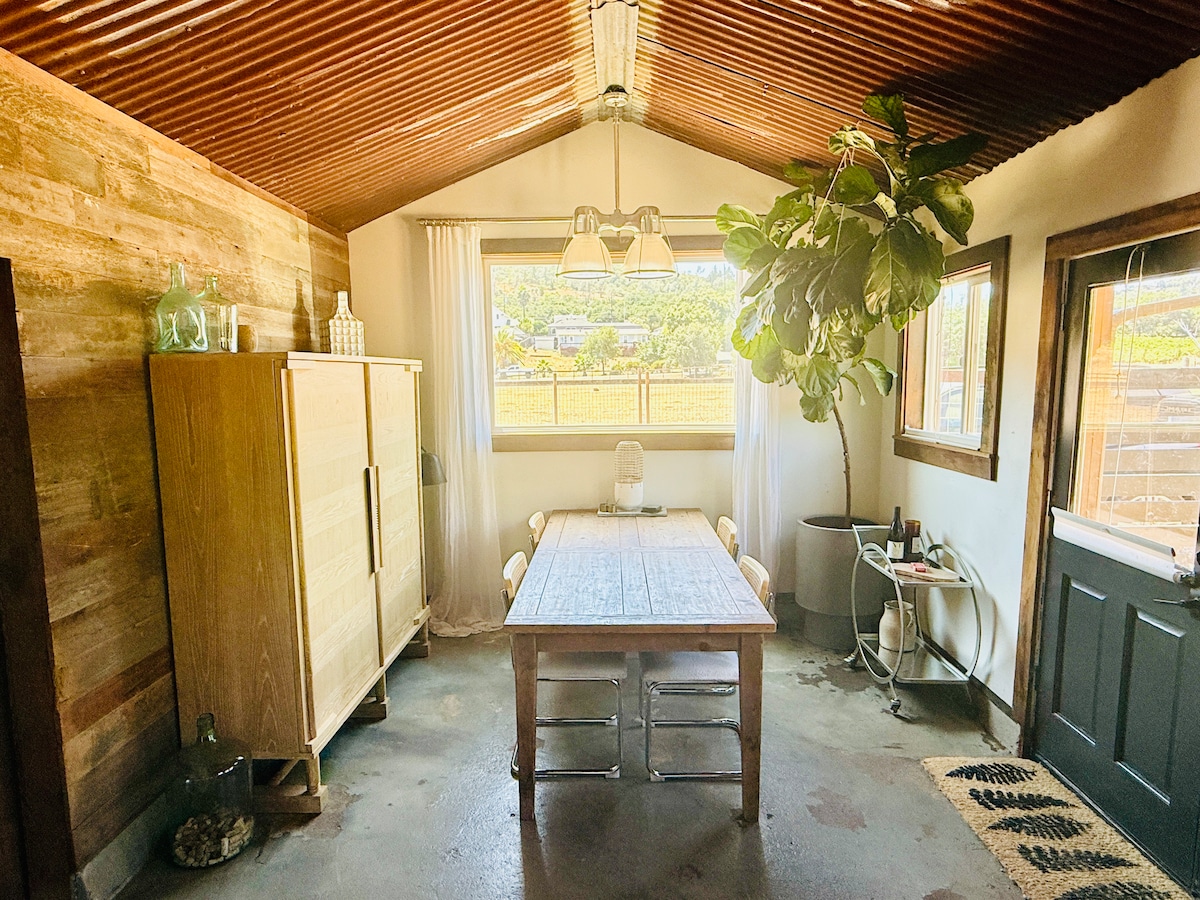 祝您在美麗的Dry Creek Valley住宿愉快,這是一個田園鄉村環境,周圍有葡萄園和當地酒莊,距離希爾茲堡歷史悠久的古樸市中心廣場僅幾分鐘路程。 小屋面積480平方英尺,配有大窗戶、高天花板和獨立入口。 前面就有停車位。 它有廚房設備(咖啡和茶壺、迷你冰箱、烤麵包機和微波爐)、客廳和帶馬賽克瓷磚淋浴間的浴室。 您可以在對面散步或沿著葡萄園跑步,也可以租一輛自行車探索山谷的美景。 如果您喜歡徒步旅行、季節性獨木舟或獨木舟,我們周圍也有機會探索。 我們的房源有多棵果樹,我們很樂意在您抵達時分享任何季節的獎勵。 這裡的水也是乾淨的泉水,非常美味,夜晚的天空充滿星星! 您可以坐在前院,前院毗鄰十幾棵紅樹,也可以在果樹間的大後院野餐。 我們還有兩隻雌性狗,如果您想見到它們,它們非常友好。 我們很樂意歡迎您來到索諾瑪郡,並確保您在這裡住得愉快。