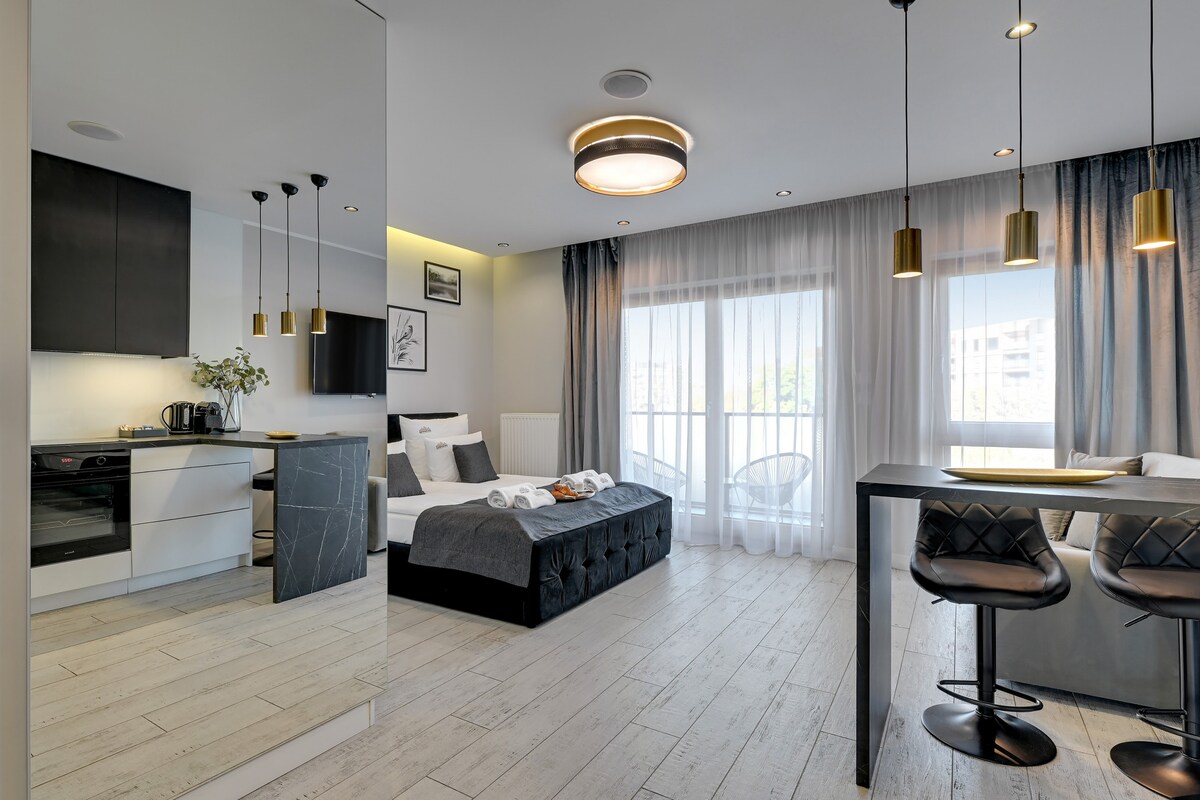 獨立浴缸、陽臺和時尚的室內裝潢—非常適合情侶或有孩子的家庭入住! 此公寓配有一間臥室和一張沙發床,最多可供 4 位房客舒適入住。 現場設施包括健身房、桑拿房、屋頂露臺和遊樂場。 位於格但斯克舊城區和莫特瓦河附近,非常適合浪漫度假或家庭入住。