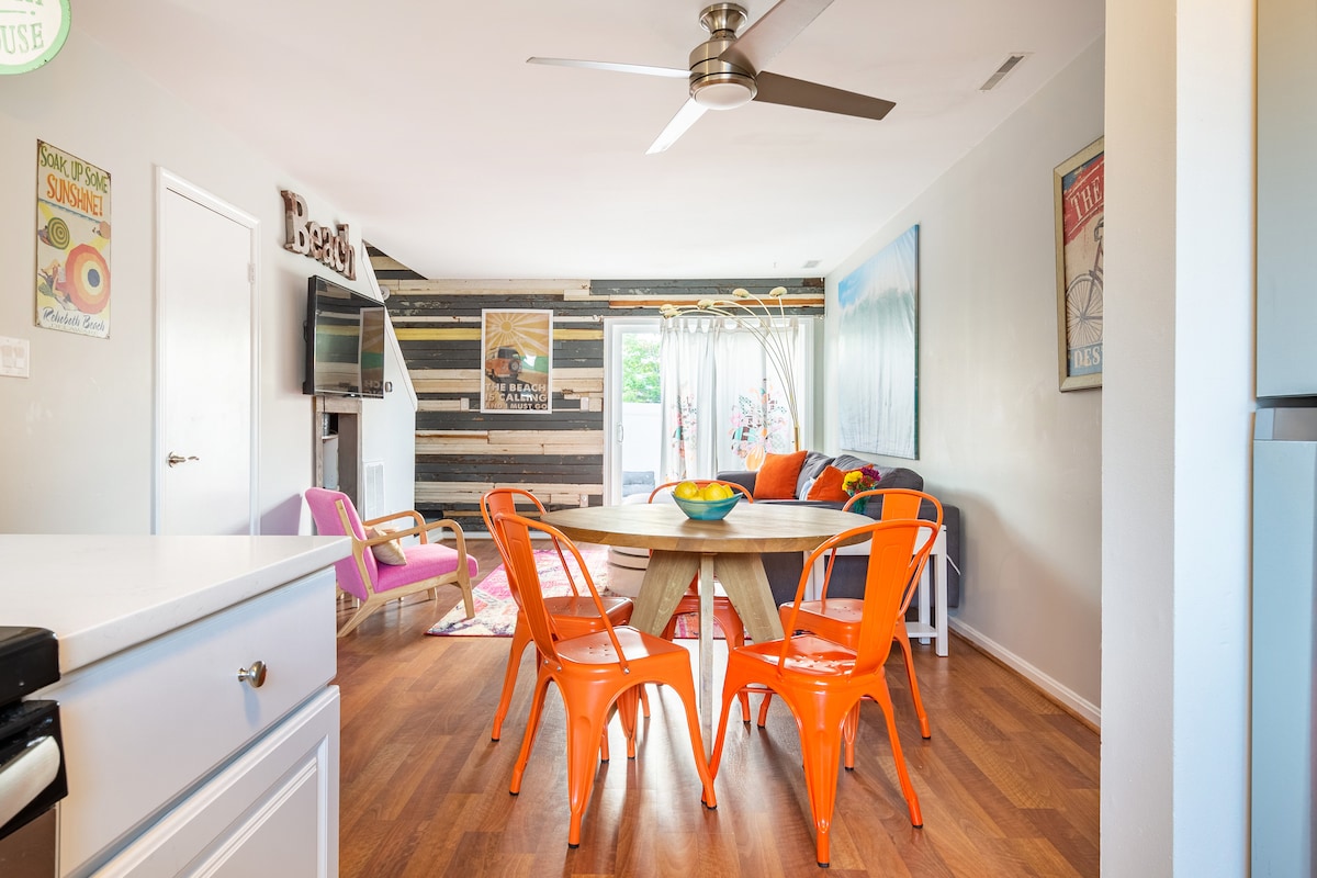 歡迎來到迷人的Rehoboth Beach,您可以在那裡購物、用餐和享受海邊。公寓位於自行車道上,我們強烈建議您使用提供的4輛自行車探索!它在我的美術工作室(Laura Killpack)上方,步行/騎自行車即可抵達市中心。寬敞的單間公寓有兩張雙人床、一間全套浴室和室外淋浴間。全新翻修,配備精心設計的藝術感和高品質的舒適度。我們致力於為房客提供卓越的體驗!