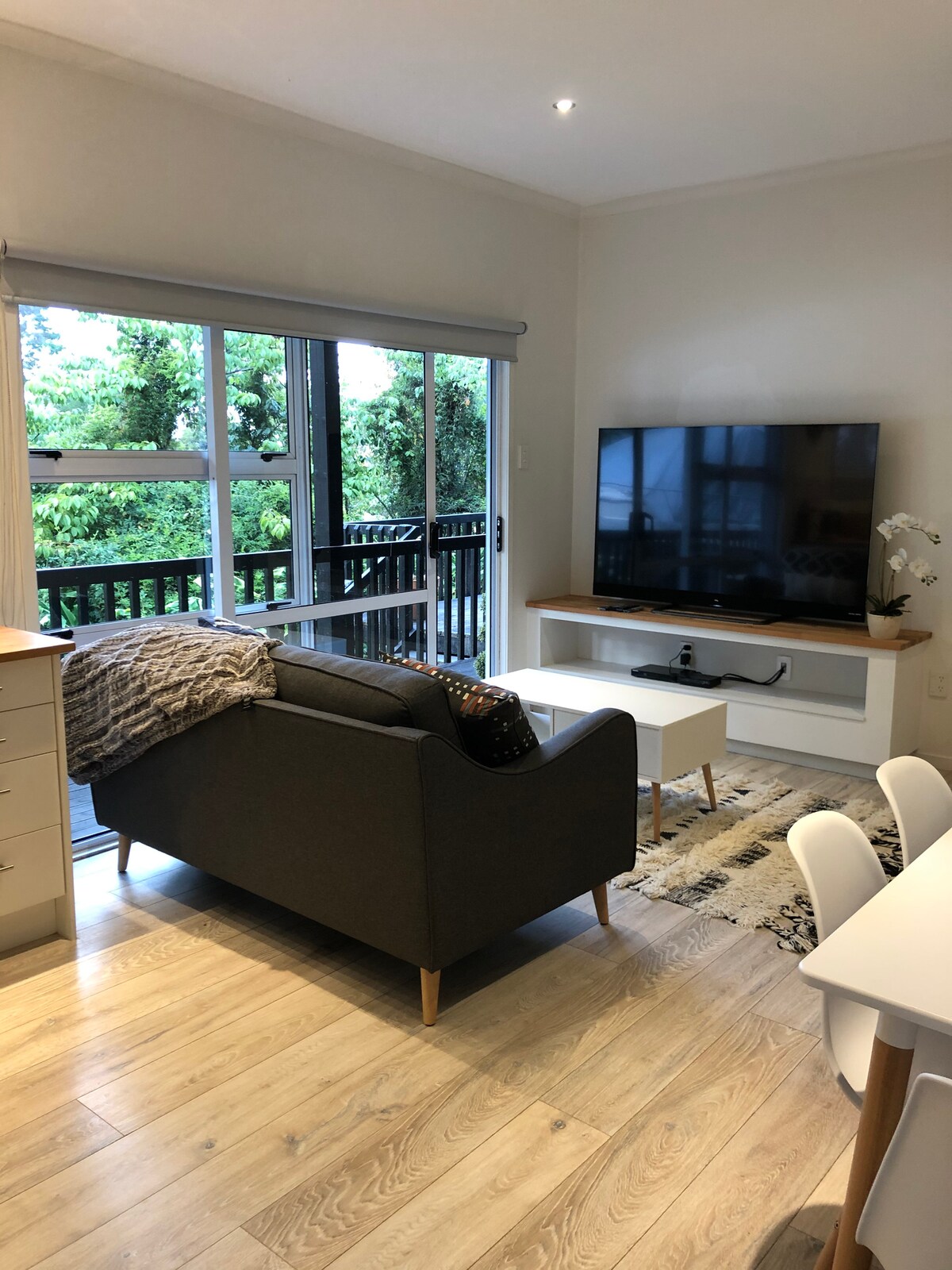 Brand-new cosy studio in leafy Greenhithe. Private entrance and fully self-contained with your own private bathroom, kitchenette and laundry. Modern, minimal, and thoughtfully designed. Enjoy a small north-facing deck overlooking peaceful native bush with all the amenities for a comfortable stay including a well-equipped kitchenette and washing machine. Only a few minutes from the motorway and a 10 minute walk to the lovely Greenhithe village.