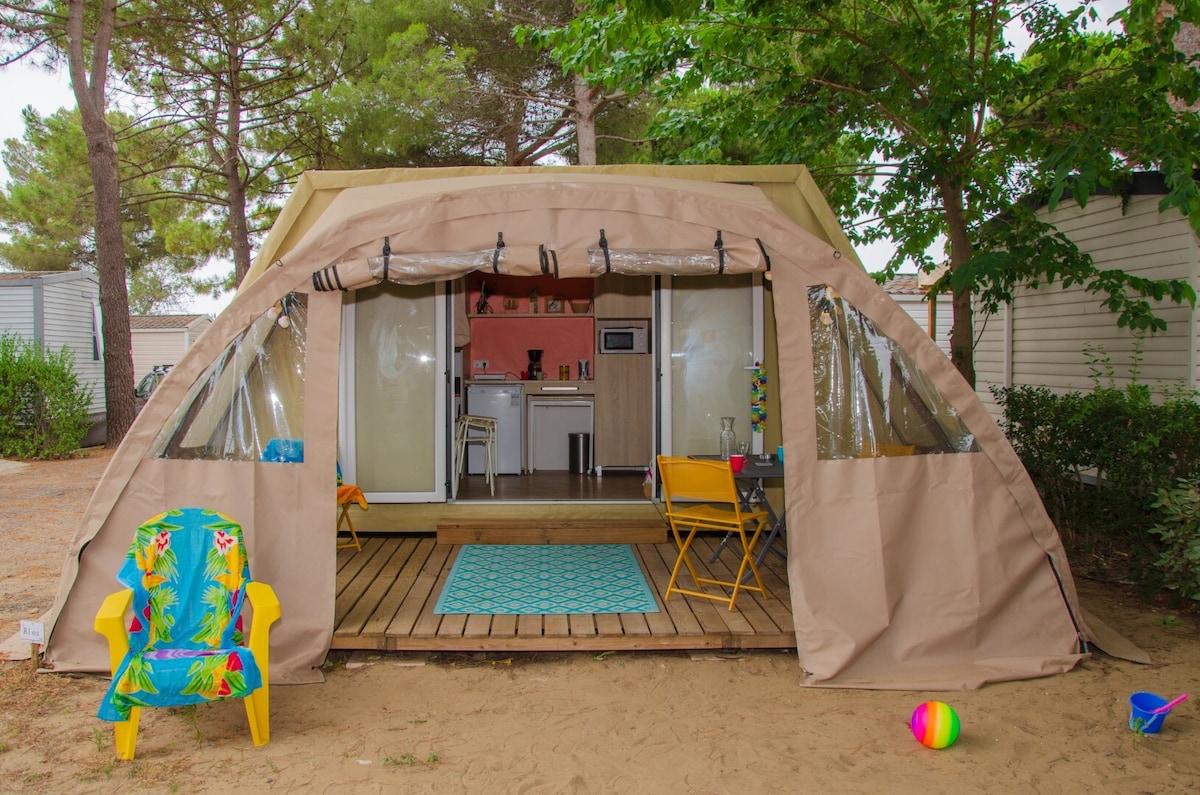 在 Vias 的野外區域搭建了 4 個帳篷。 在大自然中享受獨特的住宿體驗,每個帳篷都配備舒適的床鋪,並提供私人太陽能淋浴間。 這些簡樸又溫馨的房源非常適合想要遠離塵囂、尋找真正假期的人。 直達海灘,沿著私人路徑步行僅 500 公尺 享受配備廚房、馬桶和淋浴間的公共空間。 可免費在場地內停車