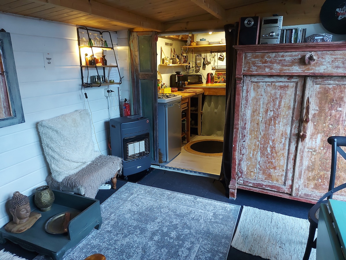 Er even romantisch tussenuit aan de waterkant met uitzicht op voorbij varende boten op een heerlijk plekje. Je kunt hier zwemmen! Met de alle gemakken zoals: een riante buiten keuken met een wasbak, oven, koelkast en 2 pits kookplaat. Een prive badkamer, gevulde minibar, koffie en thee, 1 heerlijk 2 persoons bed (180breedx240lang) en je eigen tuin! De badkamer is voorzien van alle gemakken met onder andere vloerverwarming, een stortdouche, wasbak en toilet. Clamping in Holland!