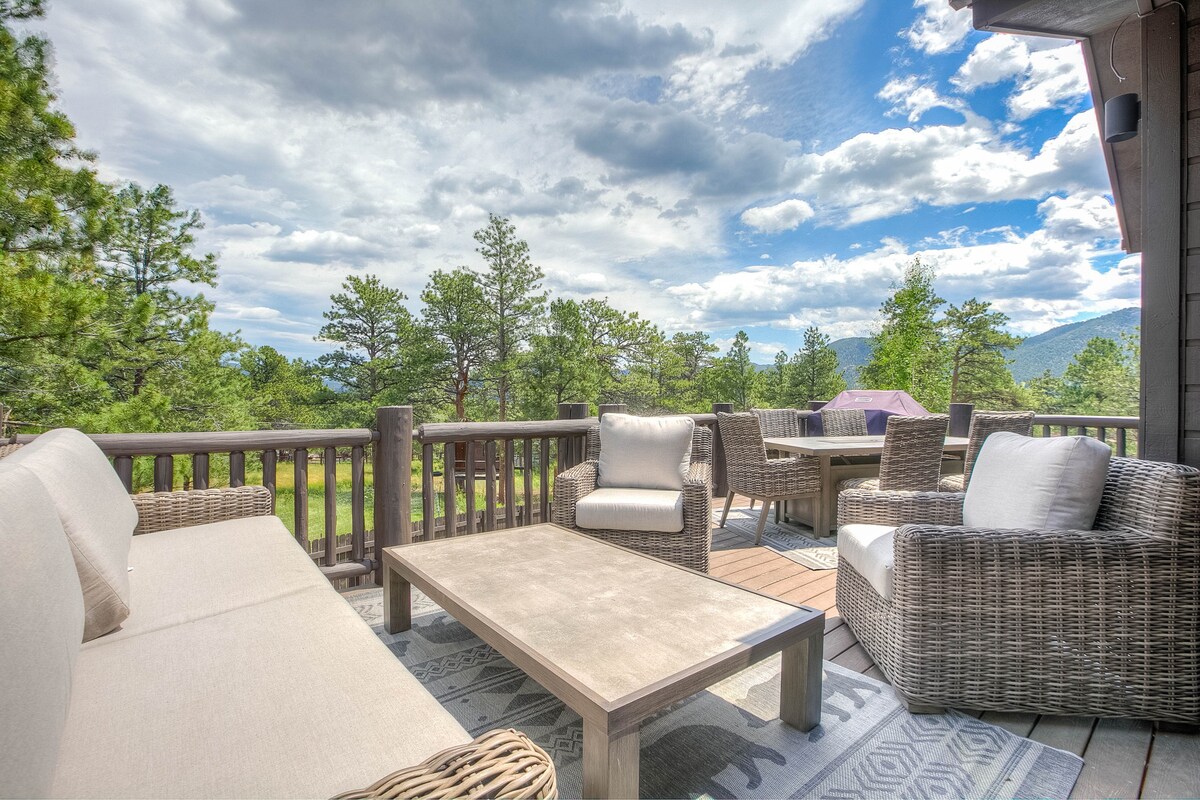 歡迎來到Whispering Pines ,這是一個獨特的房源,其建築與Estes ( 21-ZONE3019 )的任何其他建築都不同。我們的家庭住宅坐落在距離市中心和國家公園僅幾分鐘路程的住宅區,景觀寬闊,時尚別緻。非常新的建築! + 1gb 光纖網路 +瓦斯壁爐、智慧電視 + 2 張特大雙人床、1 張雙人床 + 2個露臺,配有烤肉架 + 1間臥室有套房浴室 +幾分鐘即可抵達徒步旅行、國家公園、高爾夫球場、餐廳和城鎮。 最多可入住 6 人!