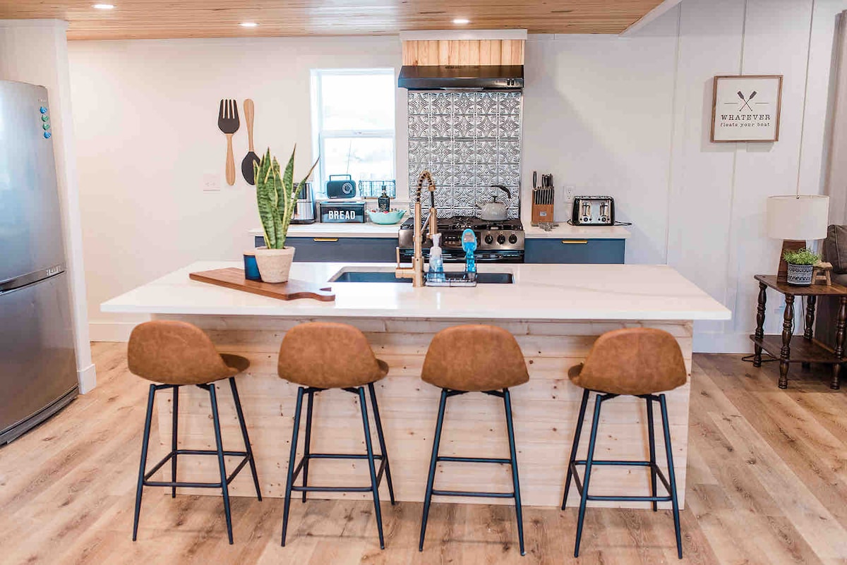 非常適合享受划船、釣魚或家庭聚會。有充足的戶外空間供您停放船隻或與家人一起玩戶外遊戲。最多可入住10人,配有2間全功能浴室和設備齊全的廚房,配有大型生活空間,供您在湖上度過一整天后放鬆身心! 我們距離匹茲堡州立公園和碼頭不到一英里,您可以在那裡啟動您的船,步行即可抵達匹茲堡酒吧和露台烤肉店(0.2英里),距離當地雜貨店僅2英里。