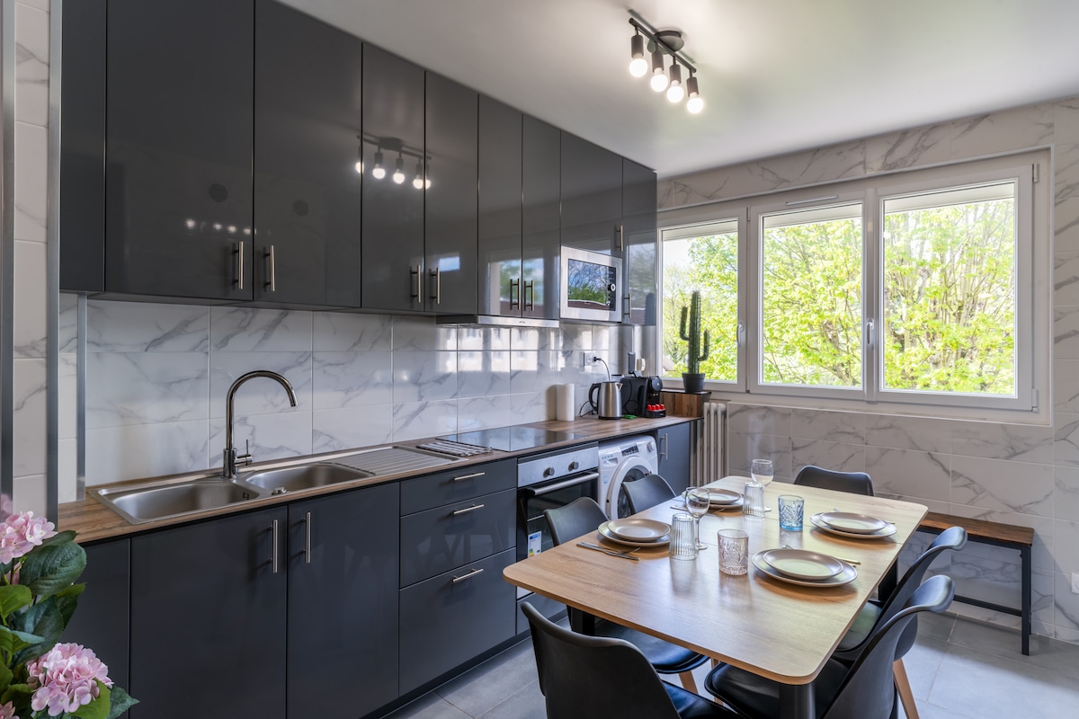 Appartement familial ou entre amis pour 8 vous accueille à Hérouville-Saint-Clair, à 4km de la Gare de Caen. L'aéroport le plus proche (Aéroport de Caen-Carpiquet) est à 11km. L'appartement : - Quatre chambres avec un lit double. - Un salon chaleureux avec un canapé et une télévision. - Un séjour pour déjeuner/travailler. - Une cuisine bien équipée où vous pourrez cuisiner. - Une salle de bain. Sont inclus : Wifi, serviettes (1 par pers.) et draps, éponge, torchon et doses de café.