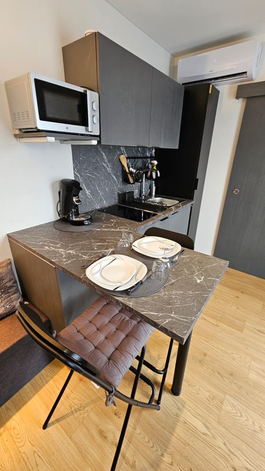 Le gite est moderne, confortable et est prévu pour 2 pers. Il se compose d'1 grande pièce à vivre avec lit double, cuisine, sdb. Vous disposez d’une belle terrasse ainsi que d’une place de parking . Nous nous trouvons à Herrlisheim (68) proche de Colmar, avec 2 restaurants et 1 boulangerie. Le + : pas de frais de ménages supplémentaires à prévoir. Locations en journée non acceptées, le gite est prévu pour du tourisme ou des professionnels de passage. Au plaisir de vous accueillir ! Laurence