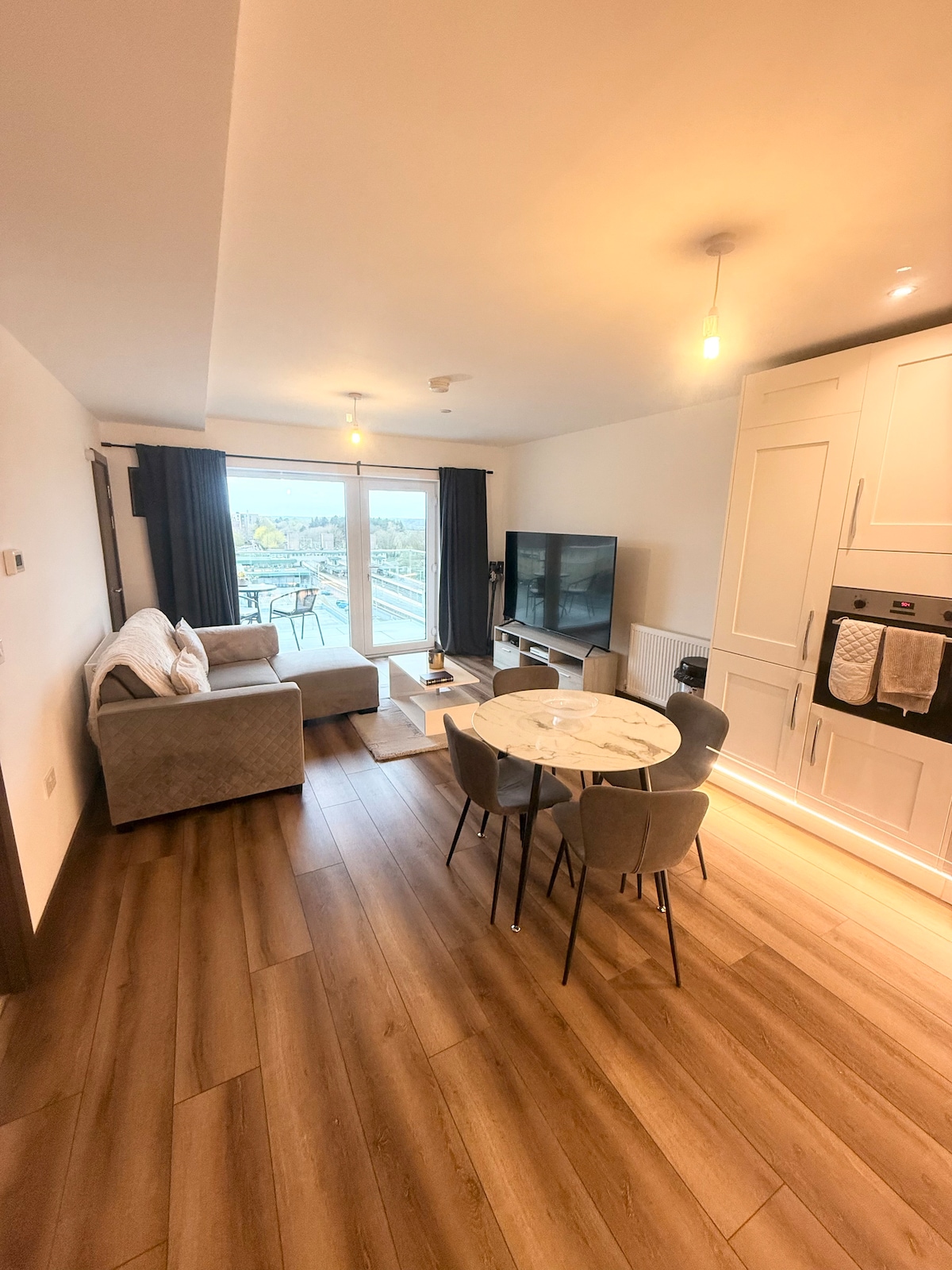 Welcome to your oasis of modern chic in the heart of Watford! Experience a stylish and cozy property with fantastic balcony views. We are just a 5 min walkfrom Watford Junction Station and Harry Potter Studios, this is your perfect base, with direct trains into London Euston within just 15 minutes! Relax in a cosy living area, cook in the new sleek modern open plan kitchen. This is the perfect place to unwind, offering 2 spacious bedrooms and 2 bathrooms. Book now for an unforgettable stay!