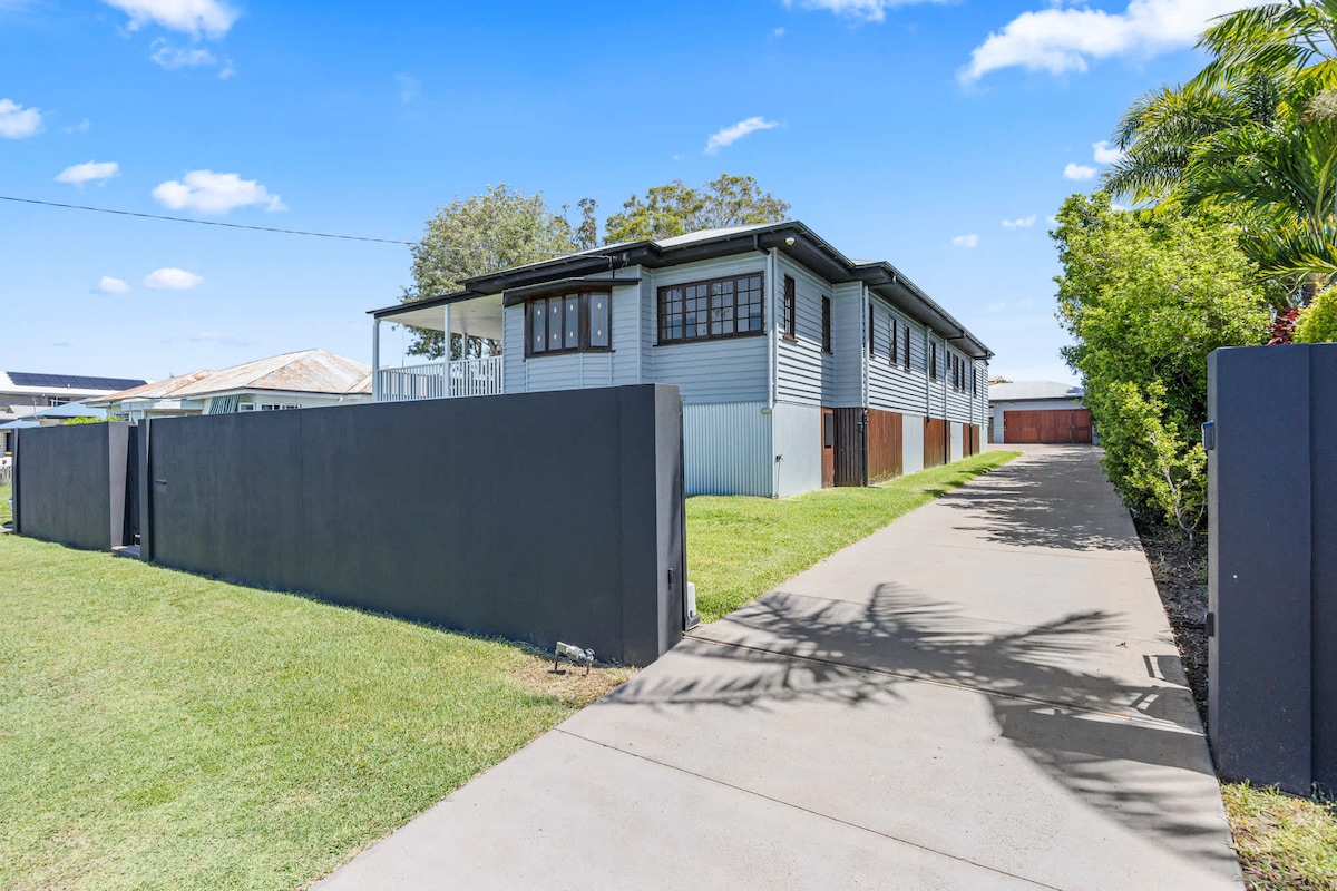 時尚的3床2浴Airbnb,距離Urangan碼頭、海灘和商店僅兩條街。 享受現代化廚房、寬敞的休息室、室內餐廳、空調和帶燒烤和高吧的涼爽陽台。 在泳池旁放鬆身心,院子可攜帶寵物入住,設有安全圍欄和4人泊車位。 僅限頂樓;一樓空置。 非常適合度假或工作住宿,樓下有洗衣房和無與倫比的位置。 舒適、便利和海岸魅力的完美融合。