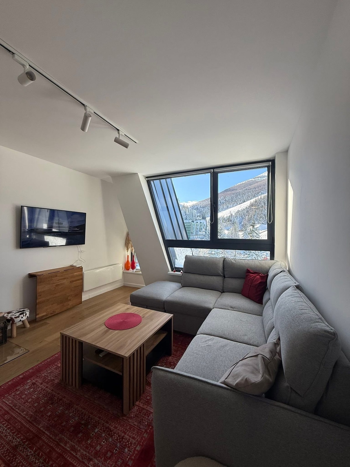 新建且設備齊全的公寓位於距離滑雪區最近的大樓一樓,可直接通往滑雪場和6座椅升降機。 公寓位於滑雪進出位置,非常適合滑雪者,在夏季,可直接通往徒步和自行車道。 公寓適合4-5人(2 +3 )入住,包括帶廚房的客廳、臥室、大廳和浴室、滑雪儲物櫃和可乘電梯前往的車庫。