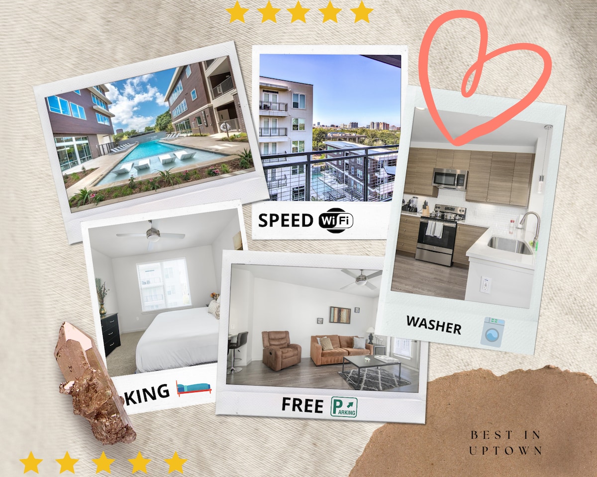 **Turtle Creek & Oak Lawn 2 房公寓(2024 年新翻修)** 享受這間時尚的二房一浴室公寓,配有時尚的起居區、智慧電視、設備齊全的廚房、豪華的雙人床和全尺寸床單是100%埃及棉白色床單,以及預留的停車位。地理位置優越,步行4分鐘即可抵達頂級餐廳,距離Turtle Creek Park和Katy Trail不到1英里,開車前往Uptown、Victory Park和Highland Park Village也很短!
