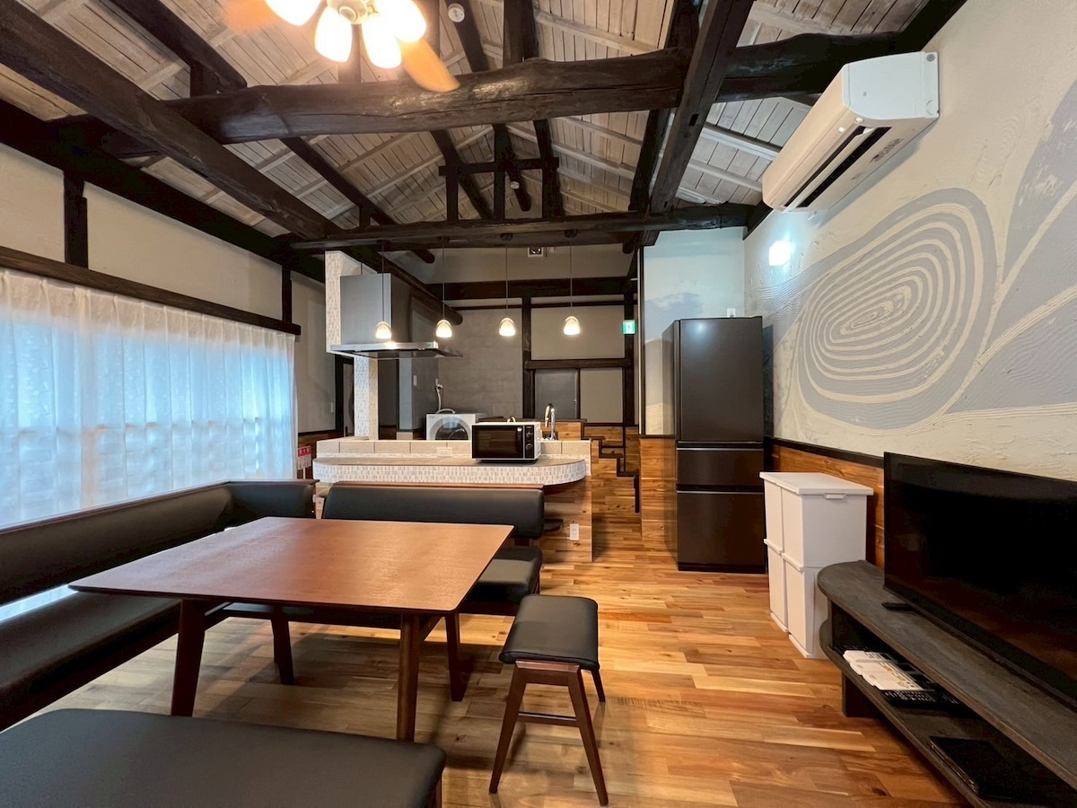 国立公園の海辺にある静かな一軒家貸切です。 波打ち際まで1分! 部屋から波音が聞こえます。 「何もしない時間が贅沢!」 148㎡の広い部屋で旅の疲れを癒して下さい。 大型スーパー、薬局も徒歩5分です。 近くに新鮮な魚や惣菜を売っている地元の鮮魚店もあります。 authentic Japanese-style house with “western comfort”Make yourself home! Enjoy your luxurious relaxing time at ‘SeaHouse Hikari’ it is only about 1 minute. walk to a beautiful beach! Let us make your stay with us be as comfortable and memorable as it can be. The nearby restaurant is the same ownership. (Renovated traditional Japanese house 150㎡)