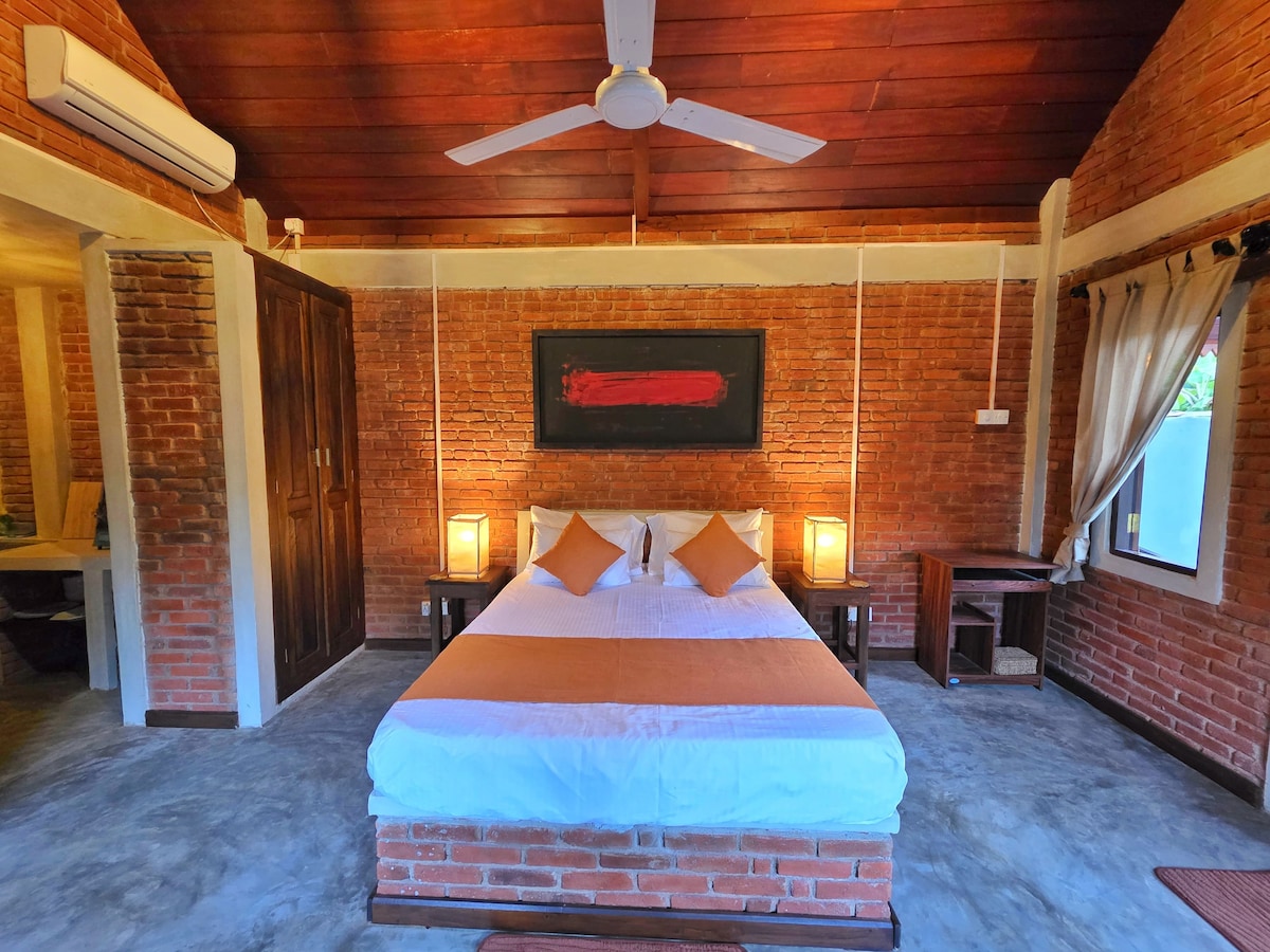 Welcome to The Ceylon Brick House, a cosy tropical hideaway just 10 minutes’ walk or 3 minutes’ ride from the beach. Relax in the private garden with outdoor seating, or prepare a simple meal in the compact kitchen. The house includes a comfy double bed, neat bathroom, washing machine, air conditioning, and Wi-Fi. Bike hire available on request – perfect for exploring local cafés, beach bars, and coastal charm.