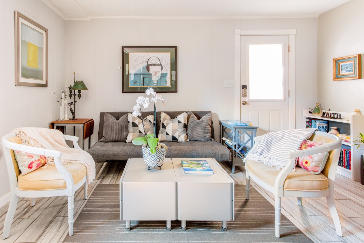 這間公寓有自己的獨立入口,位於我們的磚製科德角風格房源下方。 房源經過全面翻新,配備豪華設施。 這是一個溫馨的波希米亞小屋氛圍,帶有一點宮崎動漫魔法。 開放式平面設計包括一個備有洗碗機(和新Nespresso!)的廚房,以及一個獨立的臥室,配有舒適的加大雙人床和一個帶大步入式淋浴的獨立衛浴。 街邊停車位、快速網路和沙發床,可供額外房客使用。 請勿在屋內吸煙。