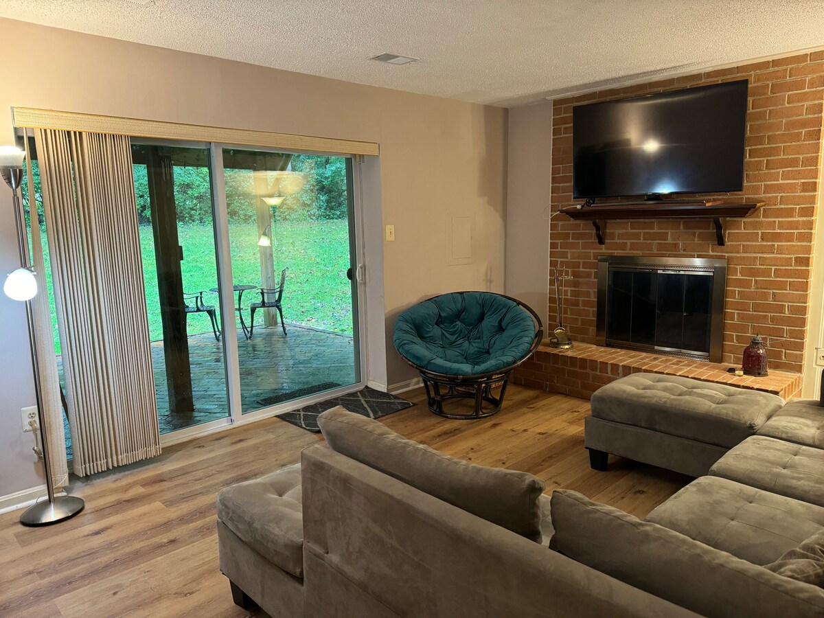 乾淨的私人步入式地下室公寓,帶私人臥室(大床);另配一張折疊單人床供第三位客人使用,私人完整浴室;小廚房配備冰箱、Keurig咖啡機、爐灶、熱水壺、微波爐和烤麵包機;寬敞的客廳設有壁爐,配備電視(Netflix)和免費WiFi。餐桌和兩張椅子。 基本廚房用具和餐具。 工作空間:書桌、轉椅。 入口通道是斜坡,對於行動不便的房客來說可能很困難。