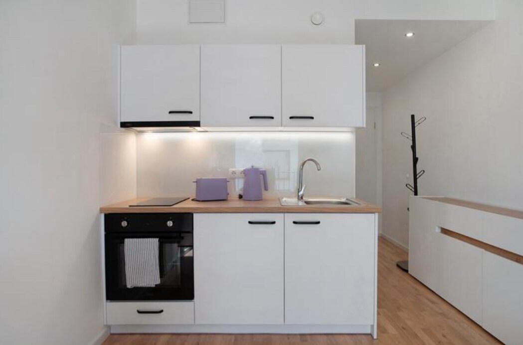 高標準客用公寓是我們2016年新建連棟房屋的一部分,並有自己的入口。 -- >寬敞的單間公寓 -- >雙人牀180x200公分(最多2人,包括牀單) -- >獨立浴室(包括毛巾) -- >配有小型冰箱(包括冰櫃)和烹飪盤、咖啡機的單人廚房 -- >步行即可抵達市中心所有辦公室、商店和大學