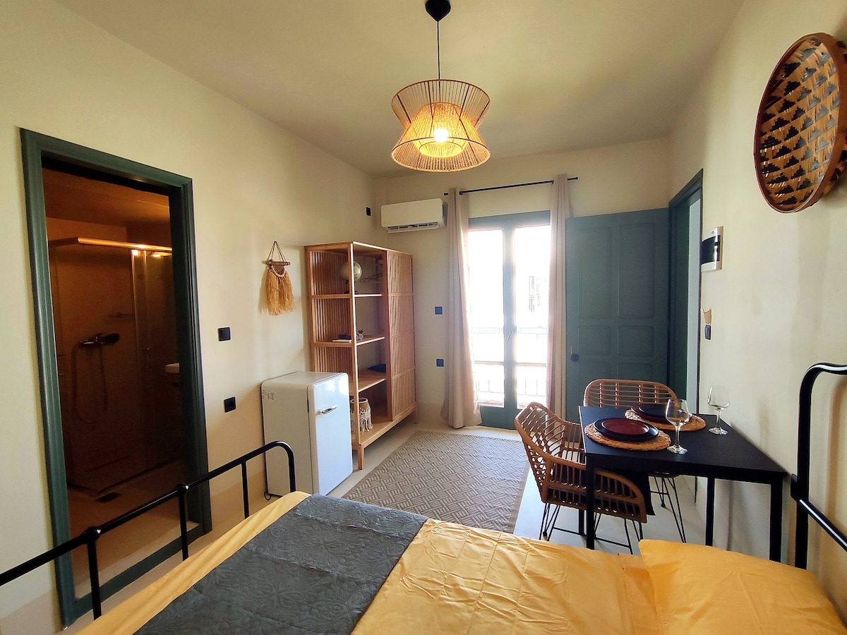 享受全新翻修的單間公寓,裝潢精美。 適合情侶或好友入住! 它位於科斯市中心,距離市中心僅5分鐘路程,步行10分鐘即可抵達老城區,步行5分鐘即可抵達最近的海灘! 即使它位於非常中心的地方,同時由於大樓的位置遠離街道,它也非常安靜! 從美麗的屋頂花園,您可以欣賞大海和山景!