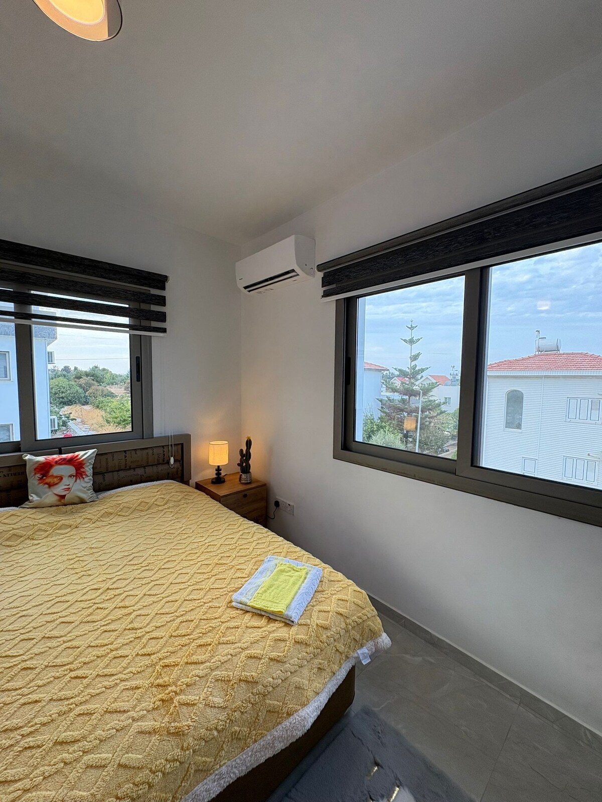 Welcome to your coastal escape in Alsancak, where sea breeze, mountain views, and Mediterranean charm meet. 🌊🏝️ This stylish one-bedroom apartment is perfect for two guests, featuring a cozy lounge 🛋️, fully equipped kitchen 🍳, and restful bedroom 🛏️. Nearby: 📍 1.5 km – Merit Hotels & Casino 🏖️ 3 km – Escape Beach 🌳 3.5 km – Alsancak Park Enjoy peaceful surroundings and access to a shared pool 🏊♂️. Relax, recharge, and embrace the beauty of Alsancak. 🌅