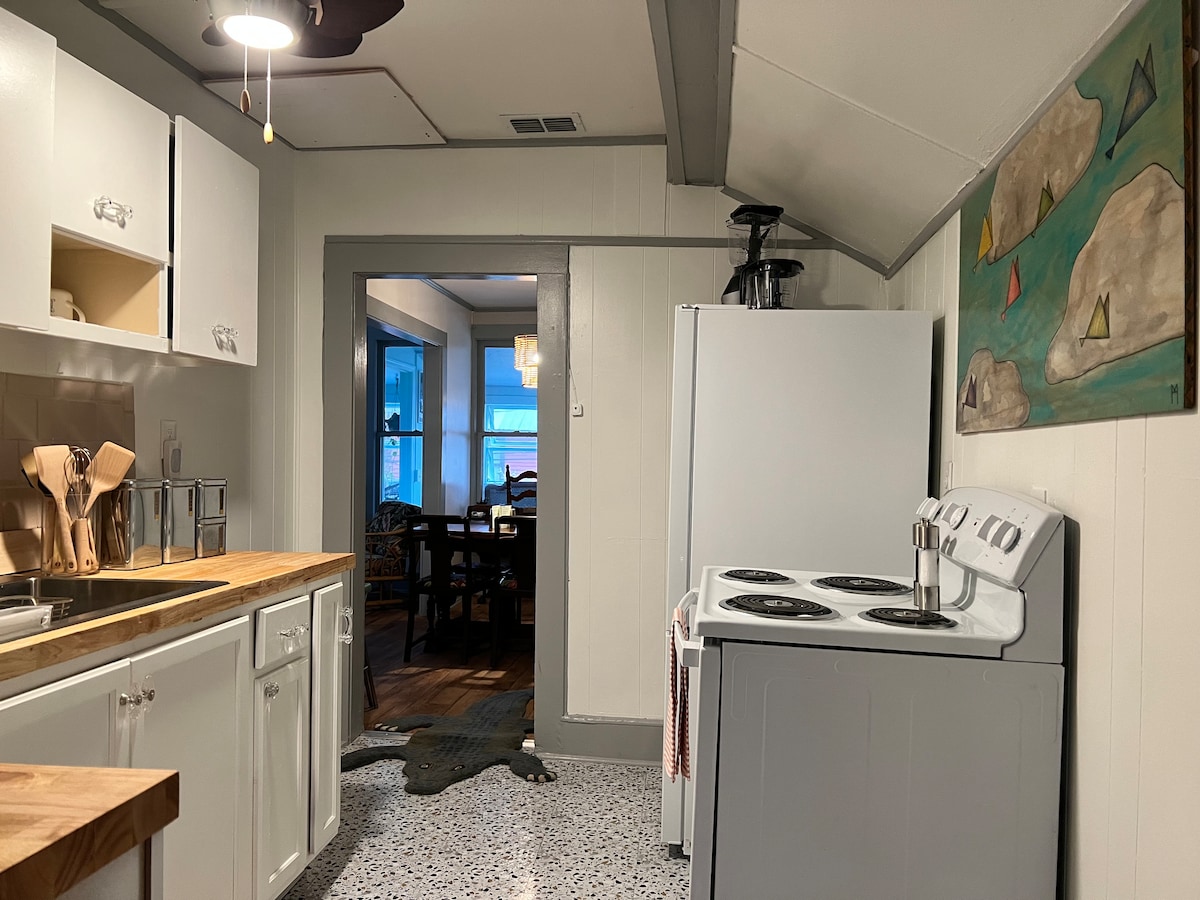 這間可愛的上城公寓位於市中心!毗鄰美妙的上城商店和餐廳,包括我們自己的酒窖和酒吧。步行即可抵達繁華的歷史市中心、堡壘、獅子橋和馬坦薩斯河。可騎自行車前往維拉諾海灘(Vilano Beach)和安娜斯塔西亞州立公園(Anastasia State Park)。開車前往Anastasia Island或Vilano的其他海灘只需很短的車程。享受聖奧古斯汀的一部分,通常只有當地人才能享受,並在友好的歷史悠久的Abbott Tract街區放鬆身心。