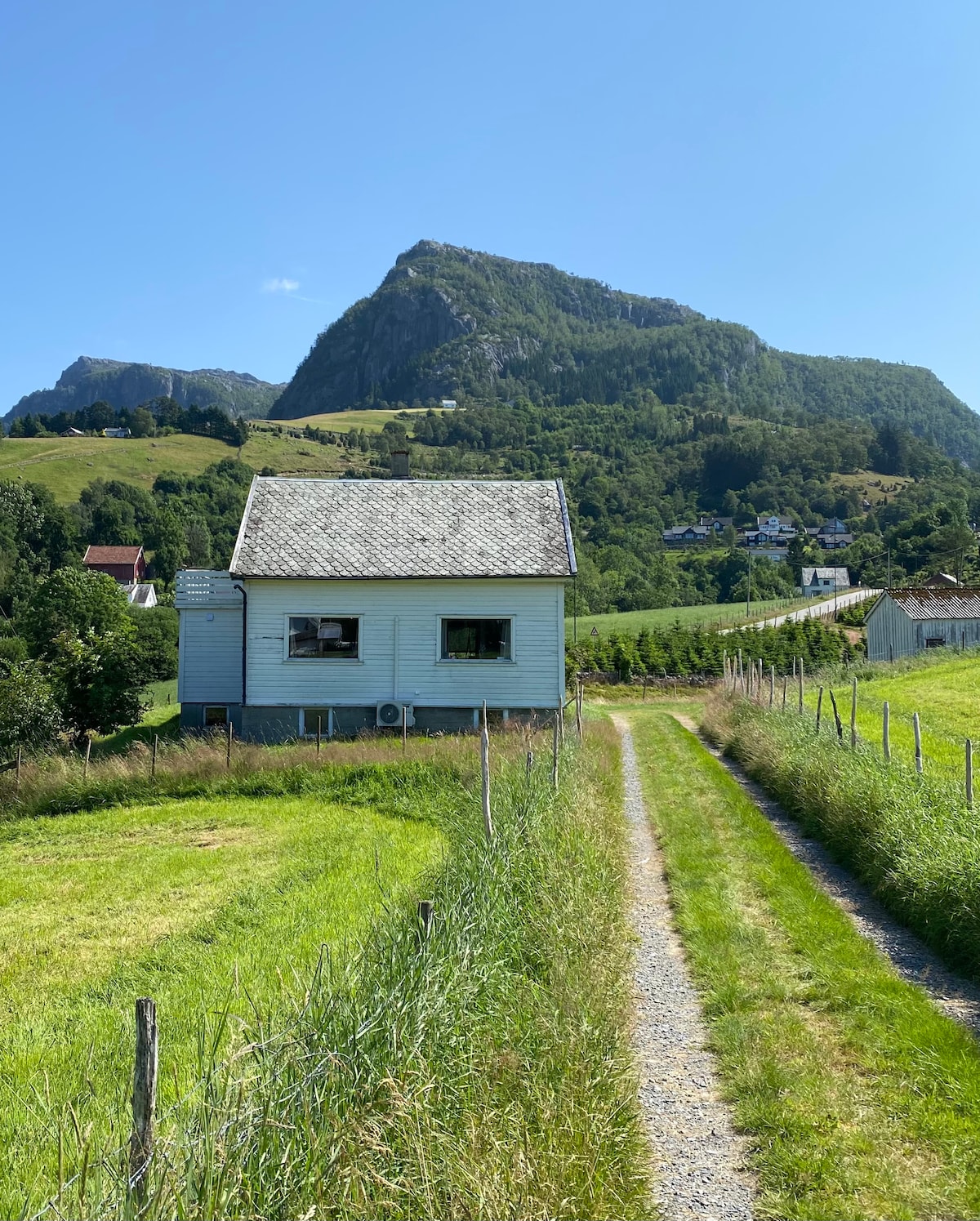 Boligen ligger fredelig til på en fruktgård med naturen som nærmeste nabo. Flotte turområder i nærmiljøet, blandt annet Skomakernibbå og Ritlandskrateret. Prekestolen er 50 km unna. 1,5 km til den lokale dagligvarebutikken, det er også flere gårdsutsalg i nærheten. Det er en times kjøretur til Stavanger.
