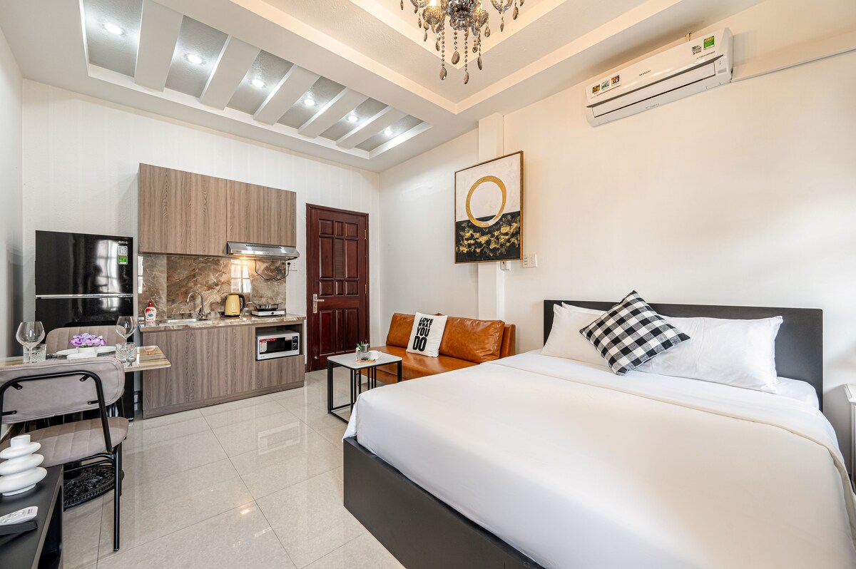 設計精美的單間公寓,配備您需要的一切設施,位於市中心,但隱藏足以讓您遠離沉重的城市噪音,享受寧靜的睡眠之夜。 非常適合想要探索西貢並尋找優質舒適和更具當地體驗的旅客。 -美麗的遊泳池 -免費快速WiFi、有線電視 -生活免費設施:洗衣機、烘乾機、空調、空調、冰箱、熱水 -廚房配有足夠的工具供您烹飪。 備註:不提供/支援增值稅發票
