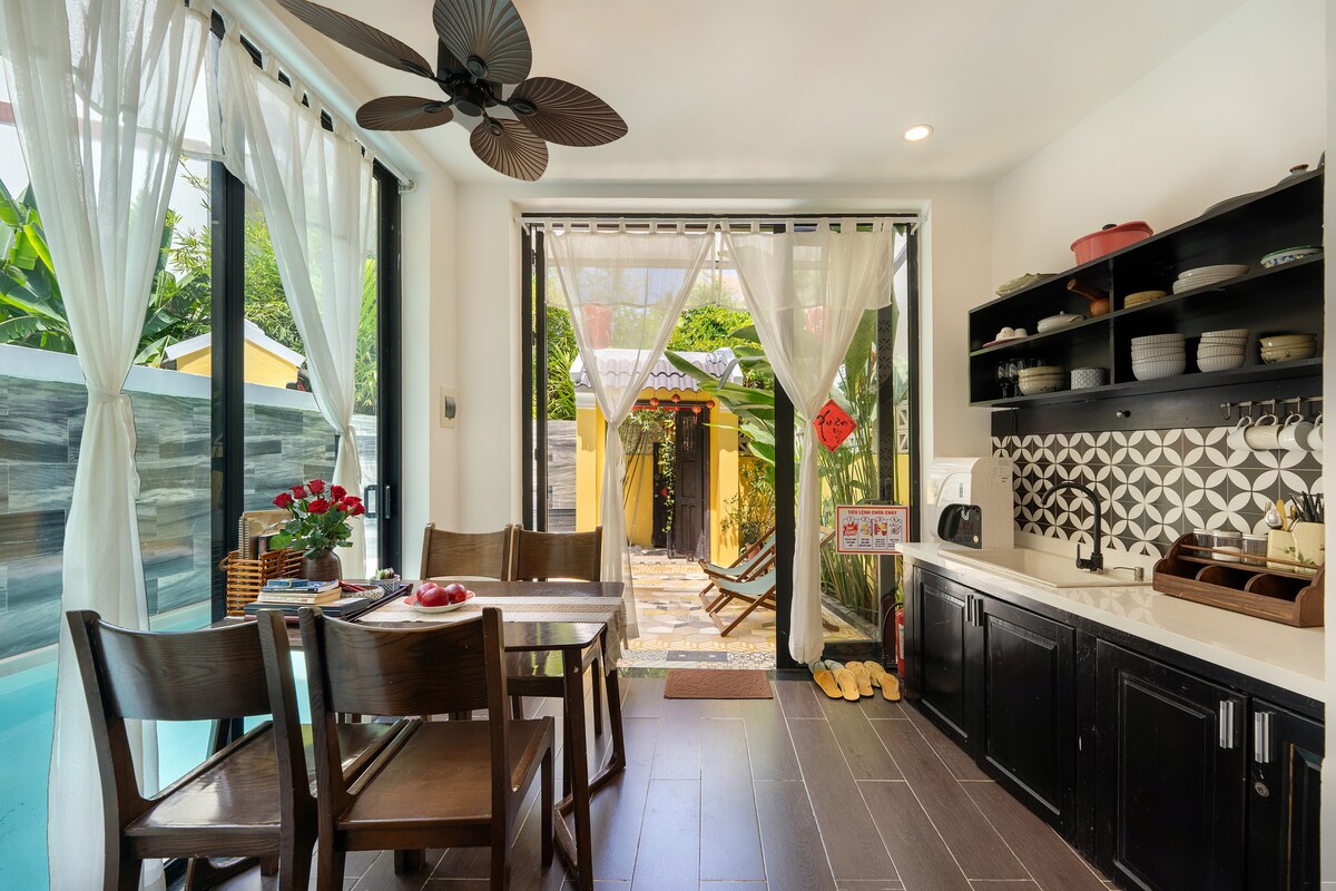 • 1 minute walk to An Bang Beach (50m) • Authentic fisherman house renovated by a French architect • Lush tropical garden with spacious outdoor living area • Unique rustic design with antique wooden furniture • Comfortable for 6 guests • 2 bedrooms (3 queen beds) • 2 spacious bathrooms (One open-air with view of tiled roofs & trees) • Fully equipped kitchen • Easy walking distance to to cafés, restaurants • A character-filled home for travellers seeking authenticity, beauty, and tranquility